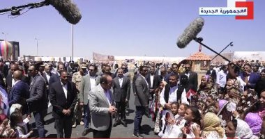 وقال الأطفال للرئيس السيسي: “اهلا وسهلا.. بمين بمين.. بسيادة الرئيس.. مصر أرض الحضارة والأرض الطيبة”.