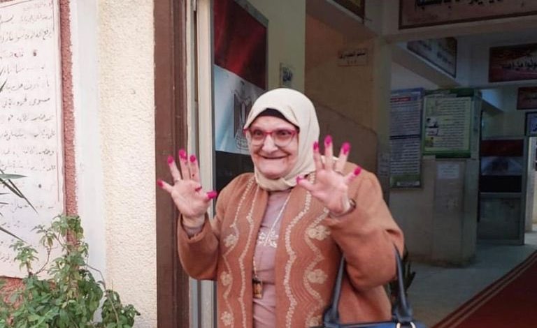 الحاجة سامية تنتخب الزعيم ” السيسي” وتبصم بالعشرة
