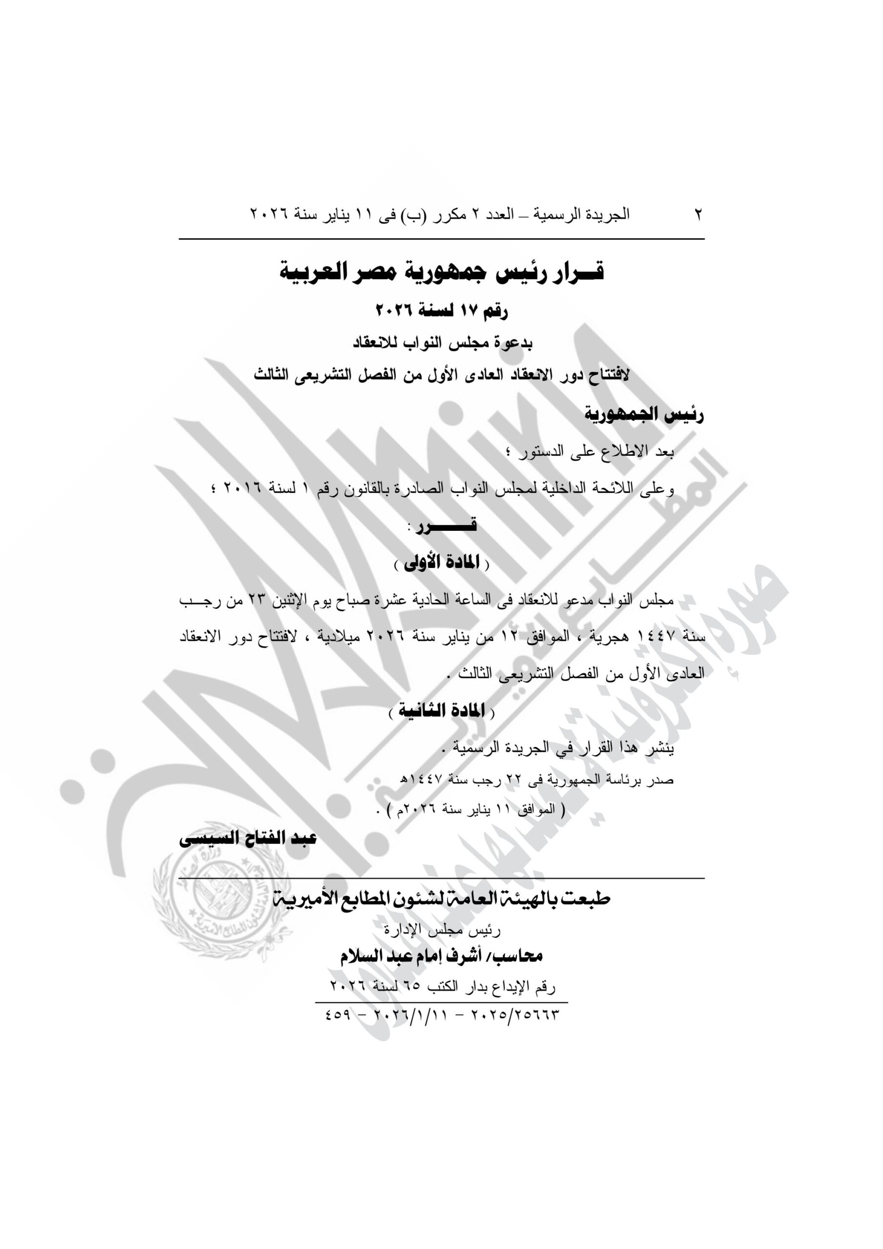 علي فضل دعا الرئيس المصري عبدالفتاح السيسي مجلس النواب للانعقاد غدا الاثنين، حسبما نشرت الجريدة الرسمية.