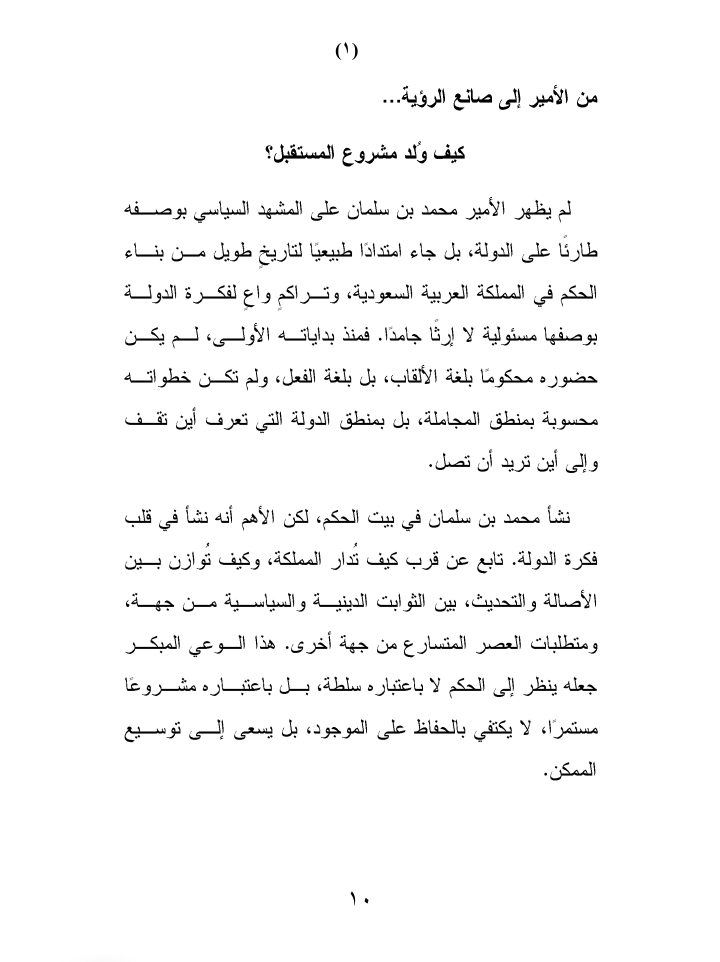 يسر صحيفة وقناة العروبة ان تنشر. الفصل الأول من كتاب زميلنا رئيس التحرير. ” محمد بن سلمان صناع السلام والمستقبل ” الذي بذل في سبيل ذلك الزميل الإعلامي والكاتب. والمؤلف الاستاذ / سامي العثمان جهود تذكر فتشكر. على. هذا الإصدار. الذي يعتبر اضافة للمكتبة السعودية والعربية