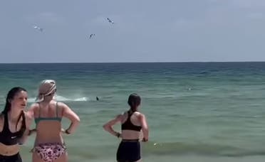 وأظهر الفيديو سمكة القرش وهي تدخل وتخرج من المياه الضحلة بأحد شواطئ فلوريدا، على مسافة قريبة جداً، لا تتخطى بضعة أمتار كما يوضح الفيديو.