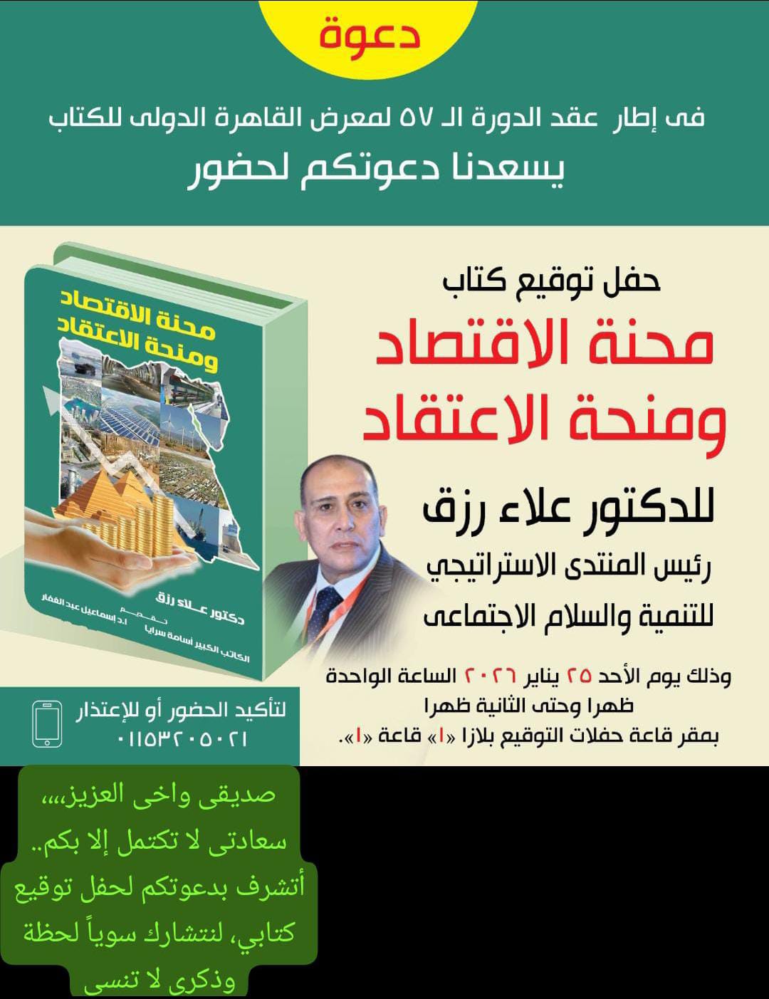 وما يؤكد ذلك كلمة السيد الرئيس عبد الفتاح السيسي في جلسة الحوار الخاصة بمنتدى دافوس الاقتصادي العالمي والتى عكست بوضوح رؤية الدولة المصرية الشاملة للتعامل مع التحديات الدولية والإقليمية، وقدمت رؤية متوازنة تجمع بين الواقعية السياسية والطموح الاقتصادي، وهو ما يعنى بوضوح التأكيد على مكانة مصر كدولة فاعلة في محيطها الإقليمي وعلى الساحة الدولية.، وهو ما يعنى من وجهة نظرنا أن الصراع الجيوسياسي التقليدي لم يعد هو العنوان الأبرز للعلاقات الدولية، بل تحول بشكل واضح إلى صراع جيو-اقتصادي، في ظل اشتداد المنافسة الاقتصادية بين الدول الكبرى، وتأثير ذلك على حركة التجارة العالمية والاستثمار وسلاسل الإمداد. وبالتالى فإن الأجواء هذا العام قد تكون مختلفة بعض الشيء. فقد أصبح السياق الجيوسياسي معقداً للغاية، بعدما أدت تصريحات وسياسات الرئيس الأميركي حول ملفات متنوعة مثل فنزويلا وجرينلاند وإيران، فضلاً عن سياساته الجمركية، إلى قلب النظام العالمي وطرح تساؤلات حول دور الولايات المتحدة في العالم. ايضاً فقد إختلف الخطاب التقليدي للمنتدى الاقتصادي العالمي في دافوس، الذى كان يتمحور حول التكامل العالمي، وتغيّر المناخ، والتعاون الدولي. ولكن ورغم التغيير الحاصل في لهجة المنتدى في دورته الحالية، إلا أن بعض الأمور لم تتغير، فدافوس لا يزال وجهة رئيسية للنخبة العالمية، فقد حملت رسائل الرئيس السيسى مشاعل إقتصادية واضحة تحمل فى ضوئها رسائل طمأنة قوية للمستثمرين، عبر ما تحقق من تحسن في مؤشرات الاقتصاد الكلي، وعودة الثقة الدولية في السوق المصري، إلى جانب التزام الدولة بتعزيز دور القطاع الخاص، وتطبيق وثيقة سياسة ملكية الدولة، والتوسع في الطروحات الحكومية.وبالتالى كلمة الرئيس في دافوس لم تكن مجرد عرض للفرص، بل إعلان عن روح جديدة يجب أن تسود العالم ، روح جسدها هو الحوار السياسي والاقتصادي ، كلمة تؤكد بأن مصر شريك موثوق، ودولة مستقرة، وقادرة على المساهمة في صياغة مستقبل اقتصادي عالمي أكثر توازنا وعدالة، بجسد حوار وروح مصرية.وللحديث بقية إن شاء الله.