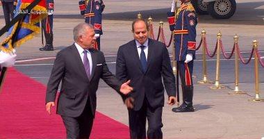 وصل الملك عبدالله الثاني عاهل الأردن، منذ قليل إلى مطار القاهرة لبدء قمة مصرية أردنية، وكان فى مقدمة مستقبلى الملك عبدالله الرئيس المصري الرئيس عبدالفتاح السيسي.