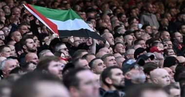 علم فلسطين يظهر في مدرجات مباراة ليفربول وإيفرتون بابدوري الإنجليزي