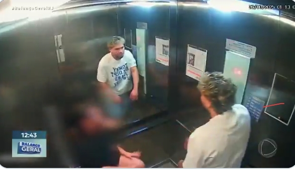 🔥NEW: American White coward arrested in Rio de Janeiro after assaulting girlfriend inside an apartment elevator—security footage shows him punching and kicking her over 20 times. Victim Required 26 Stitches to Head!