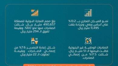 عدد المشاهدات : 4٬599 أعلنت الهيئة السعودية العامة للإحصاء اليوم، ارتفاع الصادرات غير البترولية بنسبة 10.5% في الربع الثاني…